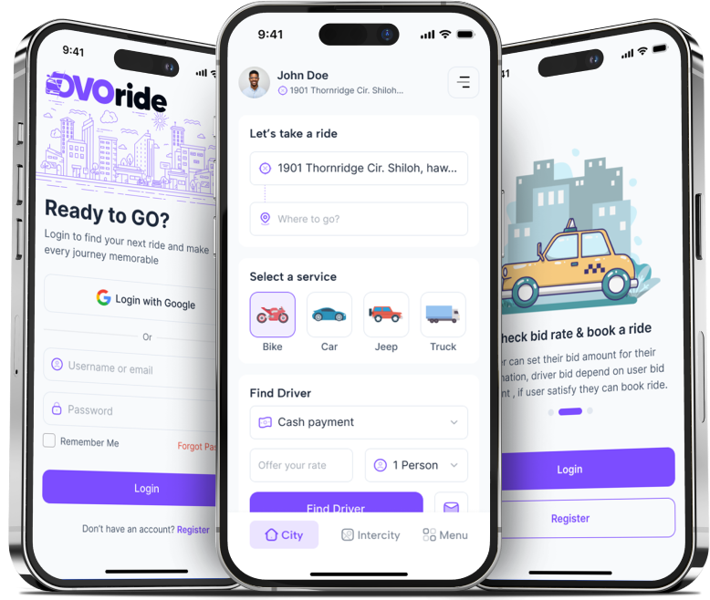الركاب بيدخلوا تفاصيل الرحلة، والسائقين بيقدموا عروض تنافسية. الركاب يقدروا يقارنوا العروض بناءً على السعر والتقييمات.